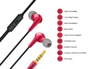 Hitage Earphones HB-19 Headphones Earplugs Headset High Definition Sound Deep Extra Bass Wired Earphone with in-line Mic Wide Compatibility Tangle Free Cable (RED)