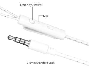 Hitage Earphones HPB-315 Headphones Earplugs Headset High Definition Sound Deep Extra Bass Wired Earphone with in-line Mic Wide Compatibility Tangle Free Cable (White)