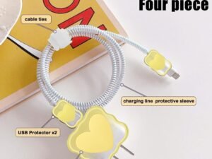 LATALI Cute 3D Design Protective Case Compatible with Apple 18W – 20W USB-C Power Adapter Charger, Protective Cover for iPhone 18W & 20W Power Adapter Charger with Wire Saver. (Yellow Heart)