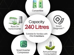 LG 240 L 3 Star Frost-Free Smart Inverter Double Door Refrigerator (GL-S292RDSX, Dazzle Steel, Convertible & Multi Air Flow Cooling)