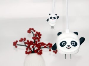 Like Star 20W/18W iPhone USB-C Power Adapter Charger Protective Case & Wire Saver, 3D Cartoon Character Case, 360 Degree Protection Cover (White Panda)
