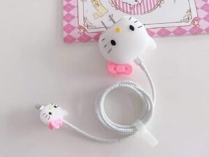 Like Star Protective Case Cover 4in1 Compatible with Apple 20W/18W iPhone USB-C Power Adapter Charger Protection Case & Wire Saver,3D Cartoon Character Case 360 Degree Protection Cover(White Kitty)