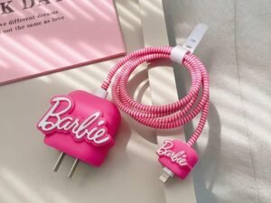Like Star Protective Case Cover 4in1 Compatible with Apple 20W/18W iPhone USB-C Power Adapter Charger Protection Case with Wire Saver, 3D Cartoon Character Case 360 Degree Protection Cover(Barbie)