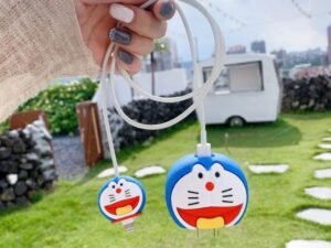 Like Star Protective Case Cover 4in1 Compatible with Apple 20W/18W iPhone USB-C Power Adapter Charger Protection Case with Wire Saver, 3D Cartoon Character Case 360 Degree Protection Cover(DOREMON)