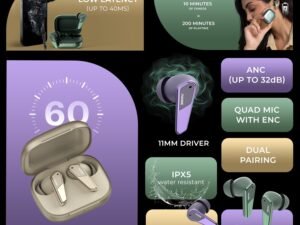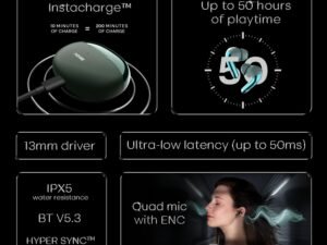 Noise Buds N1 Pro Truly Wireless Earbuds with Metallic Finish, ANC(Upto 30Db), 60H of Playtime, Dual Pairing, Instacharge(10 Min=200 Min), BT V5.3(Chrome Green)
