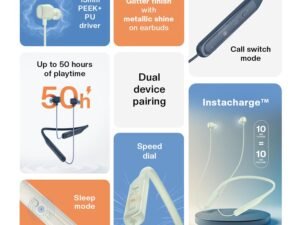 Noise Newly Launched Airwave Crest Bluetooth in Ear Neckband with Metallic Shine on Earbuds,50H of Playtime, EQ Modes, Dual Device Pairing,13mm PEEK+PU Driver, BT v5.4(Velvet Blue)