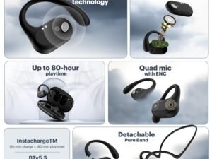 Noise Pure Pods Wireless Open Ear Earbuds with AirWave™ Technology,Up-to 80H Playtime,Quad Mic with ENC,16mm Neodymium Dynamic Driver,Detachable Pure Band,BTv5.3 (Power Black)