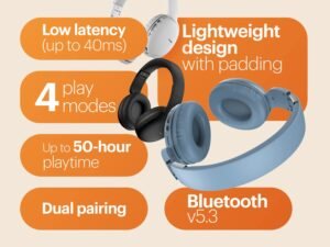 Noise Two Wireless On Ear Headphones with 50 Hours Playtime, Low Latency(up to 45ms), 4 Play Modes, Dual Pairing, BT v5.3 (Bold Black)