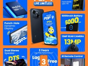 Tecno POP 9 5G (Azure Sky, 8GB+128GB) | D6300 5G Processor | 48MP Sony AI Camera | 4+ Year Lag Free Fluency |5000 mAh Battery |Dual Speaker | Without Charger