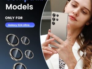 Tensea Camera Lens Protector for Samsung Galaxy S24 Ultra 5G, 9H Tempered Glass Camera Cover Screen Protector Metal Custom Ring for S24 Ultra 5G 2024, [Installation Tray]